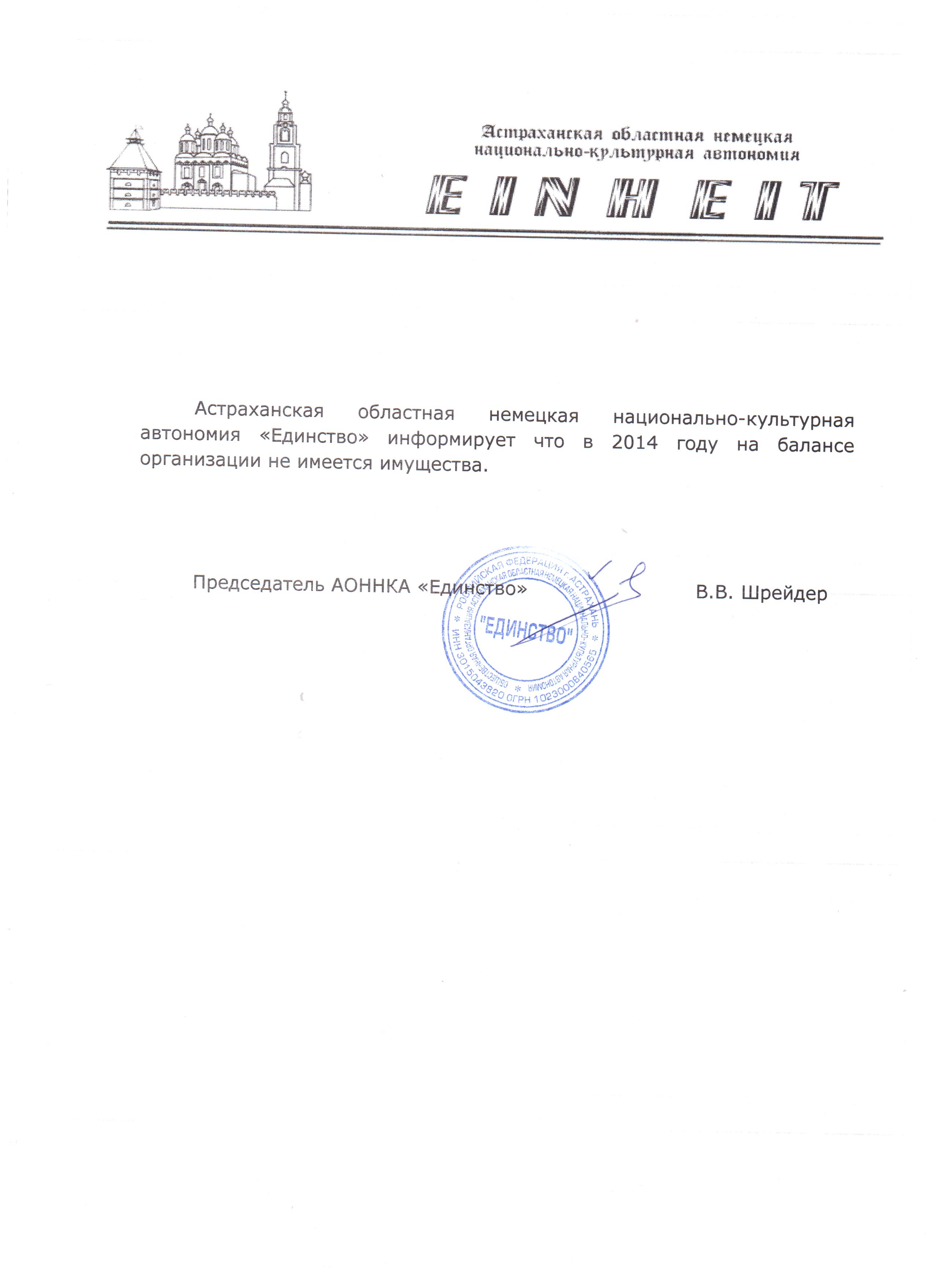 Отчет АОННКА "Единство" об использовании имущества в 2014 году
